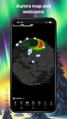 Dobijte obavijesti o Polarnoj svjetlosti u stvarnom vremenu, točne prognoze aurore, KP indeks i podatke o sunčevom vjetru. Uz web kamere uživo i karte oblaka, lako pronađite savršeno mjesto za promatranje večeras.