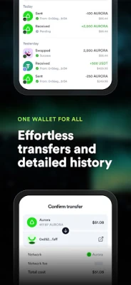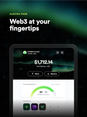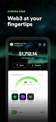 Zaboravite na dugotrajne i komplicirane postupke kreiranja novčanika. Uz Aurora Pass, dovoljno je unijeti vašu e-mail adresu i vaš će novčanik biti spreman u nekoliko sekundi – bez početne brige o pamćenju i čuvanju složenih "seed" fraza. Slobodno šaljite i primajte digitalnu imovinu s lakoćom. Dodatno, uživajte u izvanrednoj pogodnosti 50 besplatnih transakcija mjesečno, čime se eliminira briga oko troškova plina i omogućuje vam neometano istraživanje Web3 svijeta.
