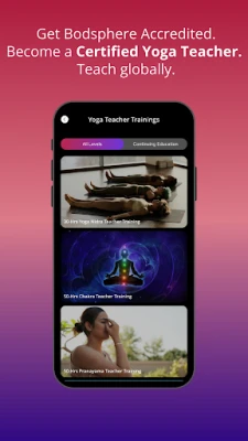 Unutar aplikacije Bodsphere otvara vam se riznica znanja. Otkrijte sveobuhvatne Yoga TTC tečajeve od 200, 300 i 500 sati, osmišljene za produbljivanje vaše prakse ili pripremu za instruktorsku karijeru. Savladajte drevne tehnike disanja uz Pranayama TTC, pronađite unutarnji mir kroz vođene meditacije i razvijte snagu, fleksibilnost te precizno poravnanje uz raznolike sekvence joge. Dodatno, istražite treninge čakri i tečajeve jogijske filozofije, uz redovito dodavanje novog sadržaja kako bi vaše putovanje bilo neprestano obogaćeno. Po završetku svakog programa, osigurana je akreditirana certifikacija.