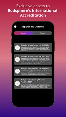 Zašto odabrati Bodsphere? Povjerenje više od 100.000 studenata u preko 190 zemalja svijeta svjedoči o kvaliteti i globalnom dosegu naše platforme. Podučavaju vas međunarodno priznati instruktori, donoseći autentična učenja direktno vama, bez potrebe za skupim putovanjima ili povlačenjima. Učite vlastitim tempom i ostvarite doživotni pristup završenim tečajevima, postajući dio iskrene globalne zajednice tragaoca. Bodsphere je globalno akreditacijsko tijelo, osiguravajući vam priznato i cjenovno pristupačno jogijsko obrazovanje koje služi vašem putovanju. Vježbajte, dišite, razvijajte se uz Bodsphere.