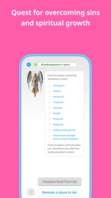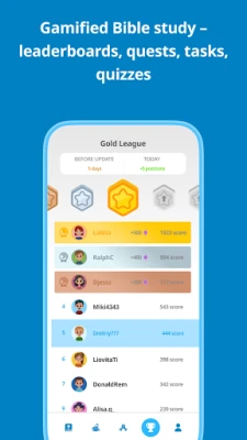 Krenite na putovanje osobnog rasta i transformacije putem interaktivnih potraga temeljenih na Evanđelju. Svaki segment duhovnog rasta, uključujući i razradu grijeha, popraćen je detaljnom lekcijom koja prikazuje njegov utjecaj na svakodnevni život te personaliziranom potragom za prepoznavanje i iscjeljivanje. Pratite svoj napredak u duhovnom dnevniku, gdje možete bilježiti svoje misli, označavati grijehe kao "iskupljene" ili "ispovijedane" i jasno vizualizirati svoj put prema iscjeljenju. Elementi gamifikacije, poput globalnih rang lista korisnika, načina niza s zaštitom od prekida i vizualne skale duhovnog napretka, čine vaše putovanje prema Bogu i svjetlosti dinamičnijim i motivirajućim.