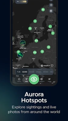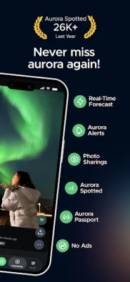 Jeste li spremni za spektakl sjevernog neba? Uz Hello Aurora, vaša potraga za polarnom svjetlosti postaje lakša i uzbudljivija nego ikad. Pridružite se zajednici od preko 234.000 registriranih korisnika i osigurajte si pristup najpreciznijim podacima u stvarnom vremenu, personaliziranim obavijestima i izvještajima o viđenjima diljem svijeta. Naša aplikacija prikuplja ažurne informacije svakih nekoliko minuta, obavještavajući vas kada je polarna svjetlost vidljiva u vašem području ili kada ju je netko u blizini ugledao. Interaktivna karta omogućuje vam da dijelite fotografije uživo i trenutna ažuriranja, povezujući vas s globalnom mrežom lovaca na auroru.