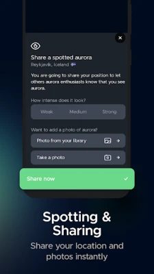 Zašto odabrati Hello Aurora? Razvili smo ovu aplikaciju iz vlastitog iskustva potrage za svjetlima. Znamo koliko tumačenje složenih prognoza može biti izazovno, stoga Hello Aurora ne samo da pruža precizne podatke, već ih i prevodi u jasna, lako razumljiva objašnjenja ključnih metrika. Značajka "Trenuci" omogućuje vam dijeljenje fotografija aurore u stvarnom vremenu iz vaše točne lokacije, gradeći osjećaj zajedništva i pretvarajući individualnu potragu u zajedničko iskustvo. Bez obzira jeste li lokalni stanovnik koji promatra s praga ili istražujete daleke destinacije, prilagođene lokacijske postavke i regionalne obavijesti Hello Aurora osiguravaju da ste uvijek spremni za pojavu svjetala. Uživajte u istraživanju bez ikakvih oglasa, omogućujući vam potpunu usredotočenost na magične trenutke.