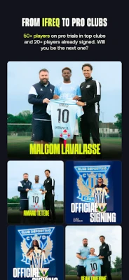 Ključna poveznica prema vrhu su službeni IFREQ Skauting Dani. Pristupite i prijavite se za ove ekskluzivne događaje izravno putem aplikacije, gdje vas očekuju pravi profesionalni skauti i treneri iz naših partnerskih klubova. Sudionici dobivaju najmanje dva puna dana intenzivne izloženosti, uključujući IFREQ Test, vođene treninge i natjecateljske utakmice, sve pod budnim okom stručnjaka. Vaši rezultati dijele se sa cijelom mrežom IFREQ partnerskih klubova, maksimizirajući vašu vidljivost. Rezultati govore sami za sebe: preko 50 igrača osiguralo je službenu probu, a više od 20 talenata potpisalo je profesionalne ugovore u najprestižnijim europskim ligama, dok deseci ostaju pod nadzorom skauta koji pristupaju njihovim podacima kroz IFREQ. Zaplovite u profesionalni nogometni svijet i učinite prvi pravi korak prema ostvarenju svojih snova.