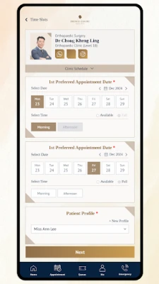 Zaboravite na komplicirane pozive i dugotrajno čekanje. S aplikacijom Prince Court Preferred, kontrola je doslovno na dohvat ruke. Jednostavnim dodirom zaslona, imate moć odabrati i zakazati preglede kod željenih medicinskih stručnjaka, osiguravajući da vas uvijek liječi tim kojem najviše vjerujete. Vaša udobnost i preferencije su naš prioritet, što vam omogućuje da bez napora upravljate svojim rasporedom, prilagođavajući ga vašem životu, a ne obrnuto.