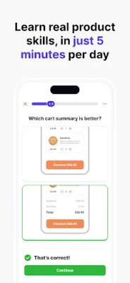 Odaberite Uxcel i iskusite učinkovito učenje kroz kratke, modularne lekcije koje vam omogućuju brzu izgradnju snažnih vještina u UX-u, upravljanju proizvodima i umjetnoj inteligenciji. Sustavno praćenje napretka omogućuje vam da jasno vidite svoj razvoj i rast kompetencija. Obrazovanje je pristupačno svima, s besplatnim uvodnim tečajevima i lekcijama koje pokrivaju sve razine znanja – od početničkih do naprednih. Pridružite se zajednici od preko pola milijuna profesionalaca koji već unapređuju svoje vještine uz Uxcel. Započnite svoje putovanje prema tome da postanete suvremeni, za umjetnu inteligenciju spreman profesionalac već danas.